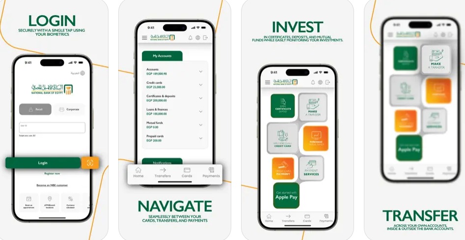 • دعم Apple Pay: يمكن الآن لعملاء البنك الأهلي المصري ربط بطاقاتهم بسهولة بخدمة Apple Pay باستخدام بيانات تسجيل الدخول فقط، دون الحاجة إلى خطوات إضافية، للاستمتاع بتجربة دفع سلسة وآمنة.
