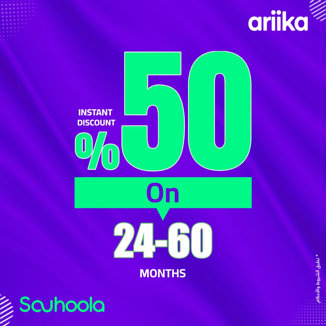 ««ومن خلال العرض يمكنك أن تشتري كل اللي نفسك فيه من ariika بخصم فوري 50% بدون حد اقصى و قسط من 24 إلي 60 شهر بدون مقدم او مصاريف إدارية»».