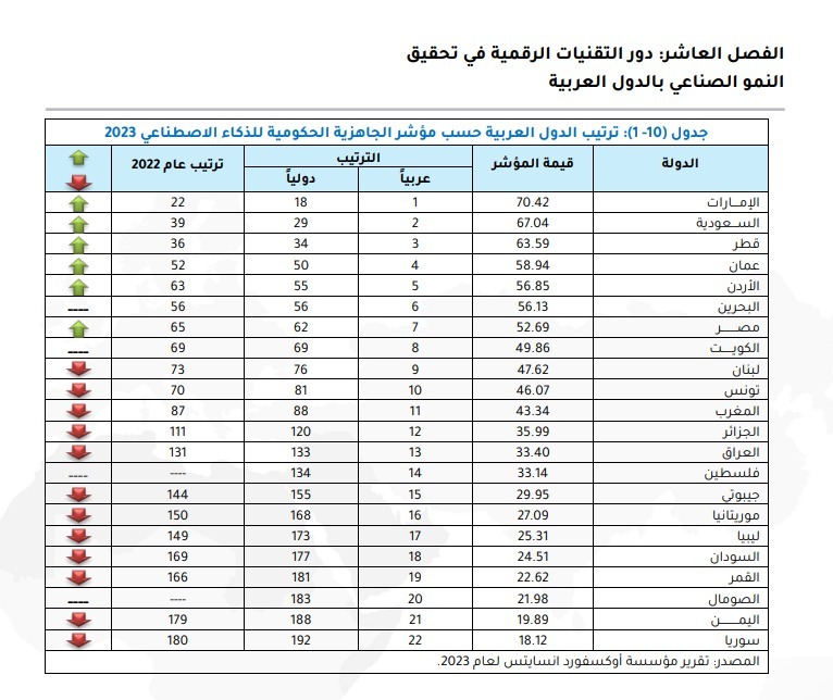 ودعا التقرير هذه الدول إلى تكثيف جهودها لتعزيز جاهزيتها في مجال الذكاء الاصطناعي عبر تبني استراتيجيات وطنية شاملة، وزيادة الإنفاق على الابتكار التكنولوجي، والاستفادة من التجارب الناجحة في المنطقة.