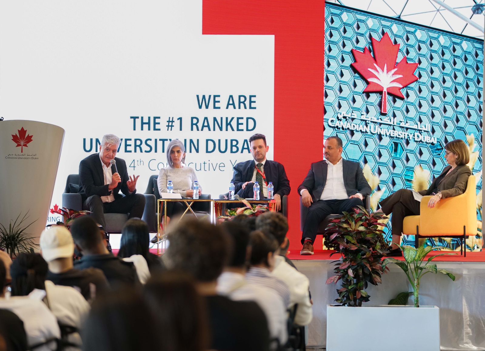 وفي سياق تعليقات شافعي حول البيئة المرنة والداعمة، ارتقى رائد الأعمال والمؤثر البارز، أيمن اليمن، إلى المسرح ليشاركنا رحلته الاستثنائية كطالب في الجامعة الكندية دبي. حيث استعرض كيف أسهمت الجامعة، جنبًا إلى جنب مع مدينة دبي، في تشكيل مسار نجاحه الريادي. كما تحدث عن دوره المحوري كمؤثر في صناعة محتوى أصيل ومتسق، قادر على جذب وإشراك متابعيه بطرق مبتكرة وفعّالة.