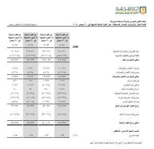 أظهرت القوائم المالية للبنك الأهلي المصري تحقيق صافي أرباح ليصل إلى 118.367 مليار جنيه، مقارنة بـ 50.009 مليار جنيه بنهاية سبتمبر 2023، مسجلاً زيادة قدرها 68.36 مليار جنيه، وبنسبة نمو 137%.