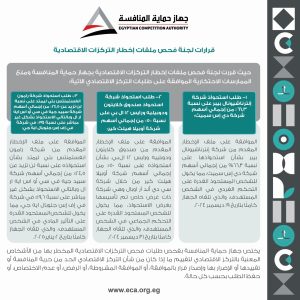 وافقت لجنة فحص ملفات إخطار التركزات الاقتصادية بجهاز حماية المنافسة ومنع الممارسات الاحتكارية على طلبات التركز الاقتصادي الآتية: