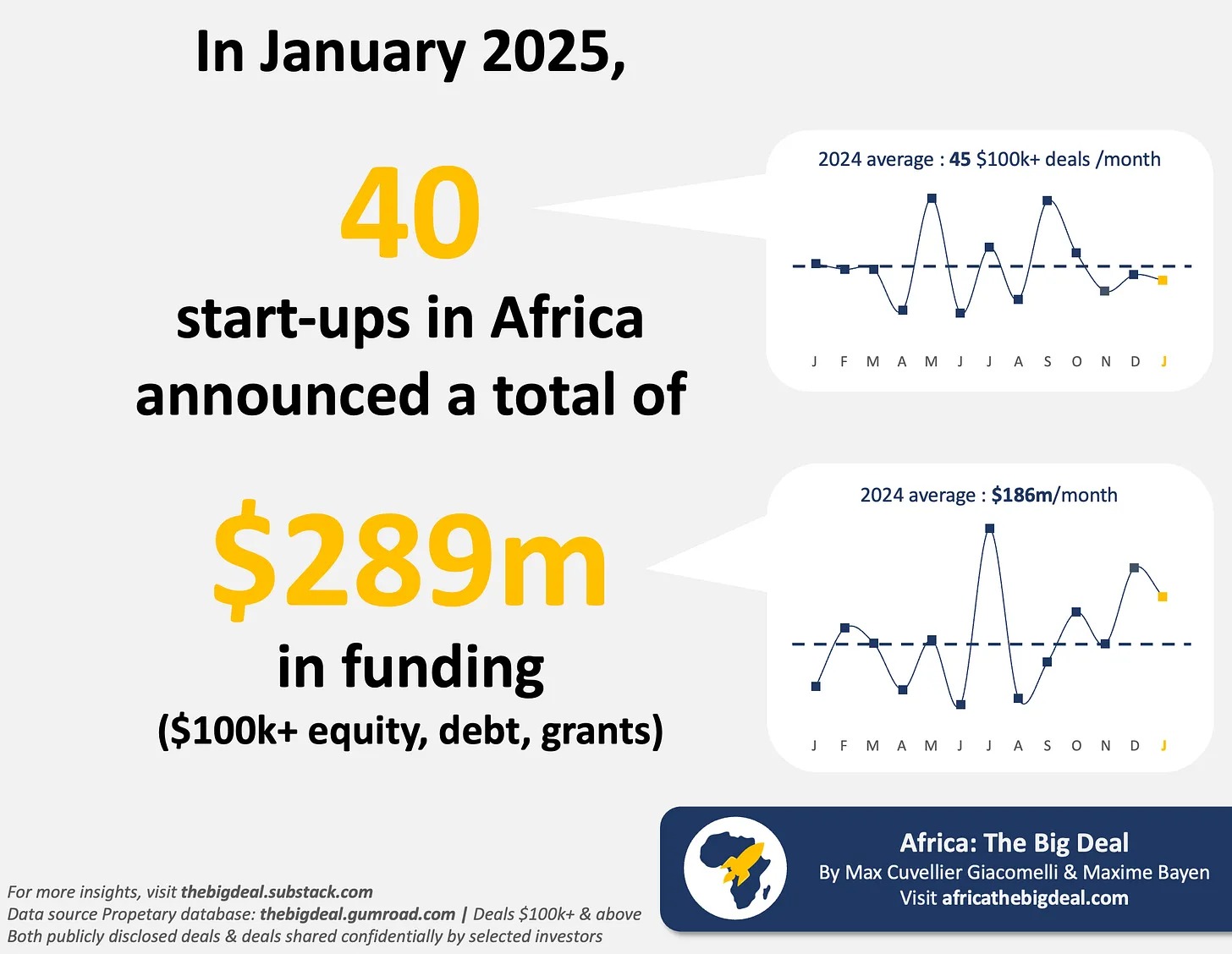 الصفحة الرئيسية رئيسيالشركات الناشئة في أفريقيا تجمع نحو 300 مليون دولار عبر 40 صفقة في يناير 2025