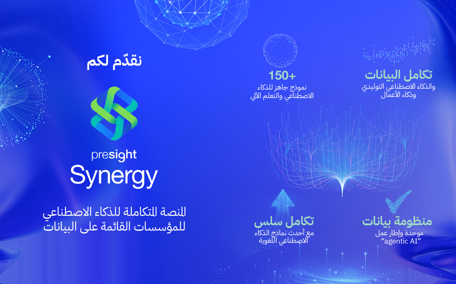 تمّ تطوير منصّة البيانات والذكاء الاصطناعي من الجيل الجديد؛ بريسايت سينرجي، محلياً وهي مُصمّمة لدعم اعتماد الذكاء الاصطناعي في المستقبل، وتبسيط تنفيذ الاستخدامات المتنوّعة في قطاعات الأعمال.