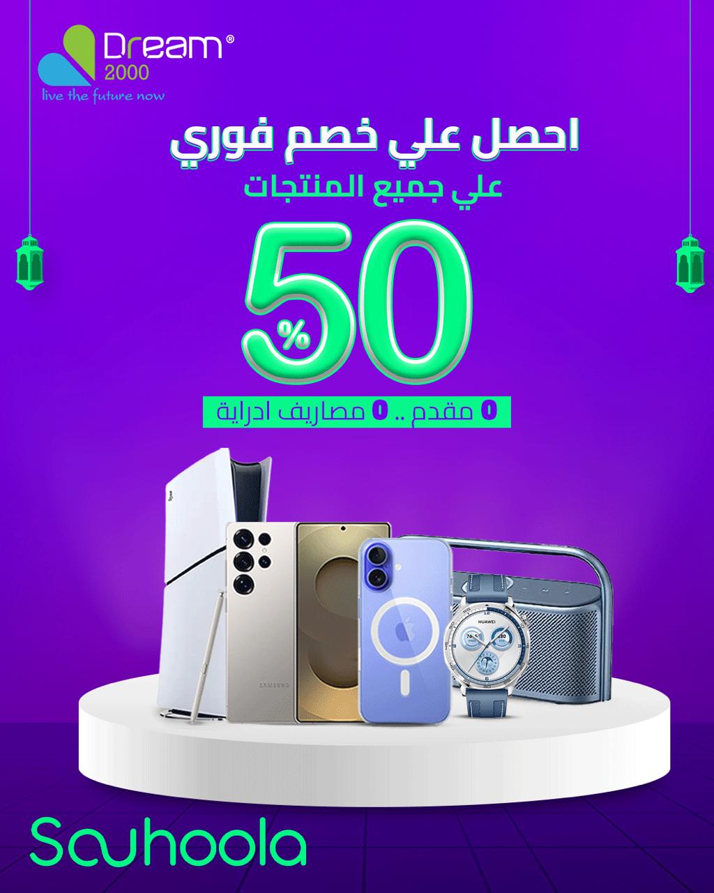 هذا العرض الفريد متاح ليوم واحد فقط، الإثنين، ويمكن الاستفادة منه عبر جميع فروع Dream 2000 وكذلك من خلال المنصة الإلكترونية، مما يمنح العملاء مرونة كاملة في التسوق واختيار الطريقة الأنسب للحصول على أحدث الأجهزة بأقل تكلفة ممكنة.
