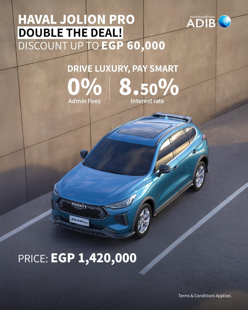 يتميز العرض بإمكانية شراء سيارات هافال بدون أي رسوم إدارية، بالإضافة إلى معدل ربح تنافسي يبدأ من 8.50% بالتعاون مع مصرف أبوظبي الإسلامي ، مع إمكانية دفع 50% كمقدم، وتقسيط المبلغ المتبقي حتى 7 سنوات.