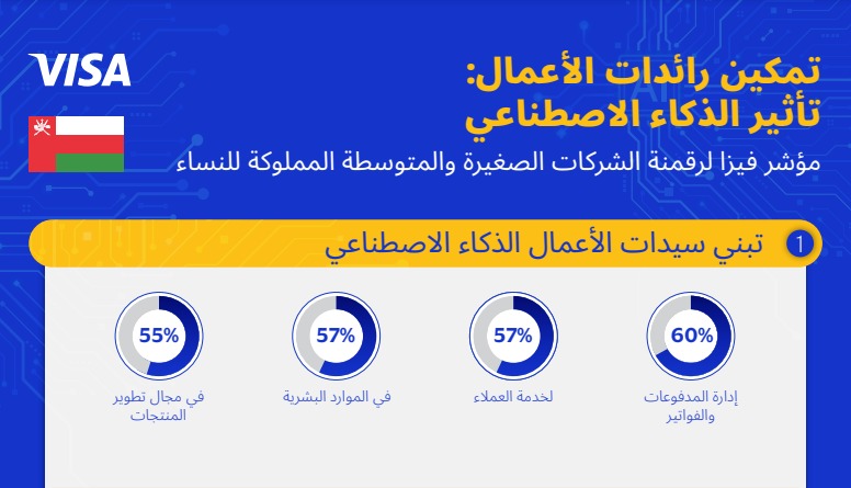 الرئيسية » «فيزا» : 60% من رائدات الأعمال في عُمان يستخدمن الذكاء الاصطناعي في تطوير المنتجات