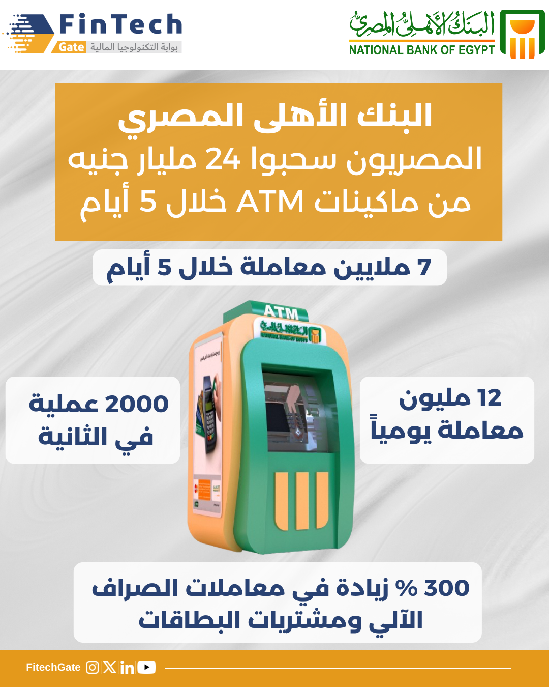 البنك الأهلى المصري: المصريون سحبوا 24 مليار جنيه من ماكينات ATM في 5 أيام