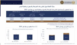 فيما بلغت التمويلات الممنوحة لصالح المشروعات المتوسطة والصغيرة نحو 1.076 مليار جنيه، مقارنة بنحو 656.9 مليون جنيه مشيرا الى ارتفاع أعداد المستفيدين ليبلغ 0.5 ألف مستفيد مقارنة 0.4 ألف مستفيد.