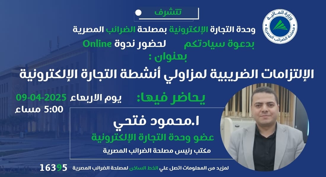 تحت إشراف أحمد حجاب، رئيس وحدة التجارة الإلكترونية بمصلحة الضرائب المصرية، سيتم تقديم شرح مفصل حول الالتزامات الضريبية التي يتحملها القائمون على التجارة الإلكترونية وصناع المحتوى