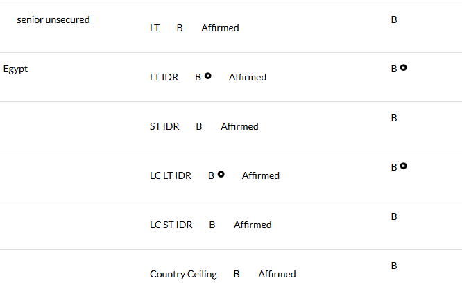 الصفحة الرئيسية أخبارFitch Ratings has affirmed Egypt’s Long-Term Foreign-Currency Issuer Default Rating (IDR) at «B» with a «Stable» Outlook