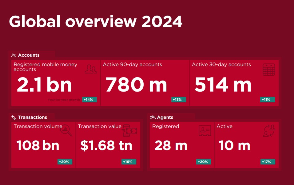 كشف التقرير عن أرقام قياسية في صناعة الدفع عبر الهاتف المحمول، حيث سجلت 2.1 مليار مستخدم مسجل، و514 مليون حساب مع قيمة معاملات بلغت 1.68 تريليون دولار. كما أشار التقرير إلى أن الإيرادات من خدمات الدفع عبر الهاتف المحمول وصلت إلى 6 مليار دولار لمقدمي الخدمة الرئيسيين في منتصف عام 2024.