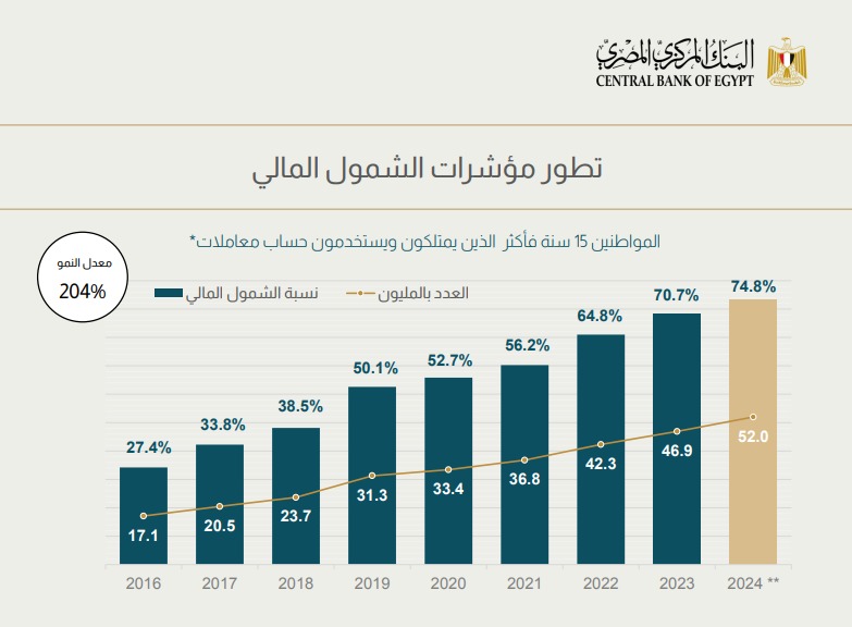 - «البنك المركزي المصري» يكشف عن ارتفاع معدلات الشمول المالي لتصل إلى 74.8% بنهاية 2024