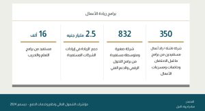 وعلى صعيد التحول الرقمي والتطوير الفني، قدمت المبادرة برامج دعم متخصصة لنحو 832 شركة صغيرة ومتوسطة، مما ساعد تلك الشركات على تعزيز كفاءتها التشغيلية ورفع تنافسيتها في السوق، تماشيًا مع توجهات الدولة نحو التحول الرقمي وتحديث منظومة الأعمال.
