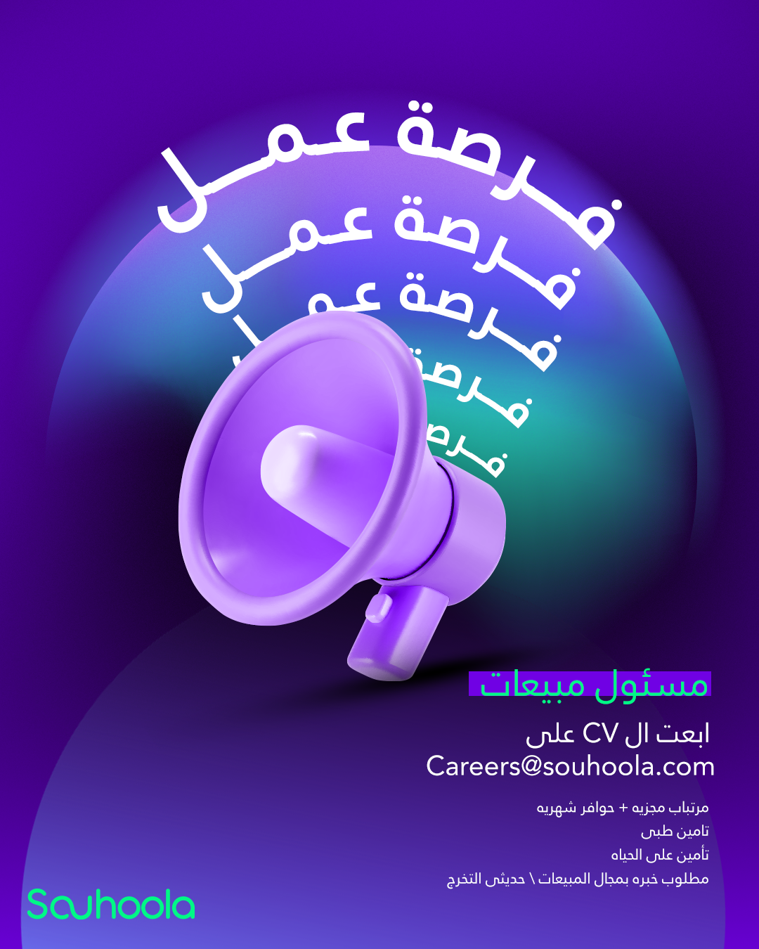 للانضمام اللي فريق سهولة ارسل الينا السيرة الذاتية على الايميل career@souhoola.com او من خلال الواتساب 01126644404