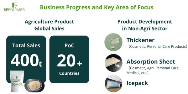 كما تسعى الشركة إلى تطوير منتجات جديدة لتوسيع استخدام البوليمرات العضوية خارج نطاق القطاع الزراعي، مستفيدة من نجاحها الحالي، حيث تمكنت منذ انطلاق عمليات البيع التجارية في الهند عام 2020، من تصدير منتجاتها إلى أسواق كبرى مثل اليابان، والولايات المتحدة، وفرنسا، محققة مبيعات تراكمية تجاوزت 400 طن بحلول عام 2025.