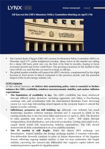 سلط تقرير حديث صادر عن شركة «LYNX Strategic Advisors» الضوء على أهمية قرار البنك المركزي المصري «Central Bank of Egypt» المنتظر، بشأن أسعار الفائدة خلال اجتماع لجنة السياسة النقدية المقرر عقده اليوم الخميس الموافق 17 أبريل 2025، في ظل ترقب واسع من الأوساط الاقتصادية والمستثمرين، خاصة مع تصاعد الدعوات لخفض الفائدة بواقع 200 إلى 300 نقطة أساس بهدف تحفيز النمو وضخ المزيد من السيولة في السوق.