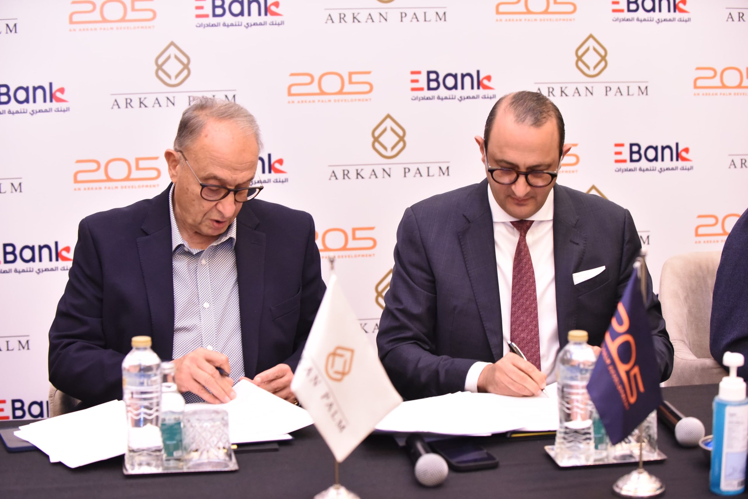 أعلنت شركة أركان بالم للتطوير العقاري التابعة لمجموعة شركات بدر الدين عن توقيع عقد مع البنك المصري لتنمية الصادرات EBank ، يتم بموجبه حصول البنك على مقر فى منطقة البنوك بالحي المالي بمشروع 205 بالشيخ زايد .