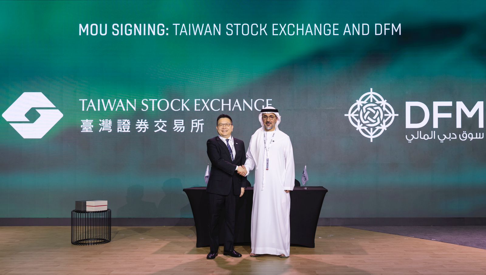 ووقّع مذكرة التفاهم حامد علي، الرئيس التنفيذي لسوق دبي المالي وناسداك دبي، وشيرمان لين، رئيس مجلس إدارة بورصة تايوان، وذلك خلال فعاليات النسخة الثالثة من قمة أسواق رأس المال لمنطقة الشرق الأوسط وشمال أفريقيا، الحدث الأبرز لسوق دبي المالي.
