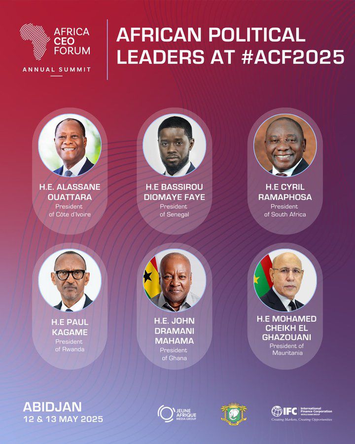 ينطلق منتدى الرؤساء التنفيذيين الأفارقة Africa CEO Forum 2025 غدا الاثنين، في العاصمة الايفوارية أبيدجان، حيث تستمر أعماله على مدار يومي ١٢-١٣ مايو الجاري، جامعًا أبرز قادة أفريقيا تأثيرًا في قطاعي الأعمال والسياسة.