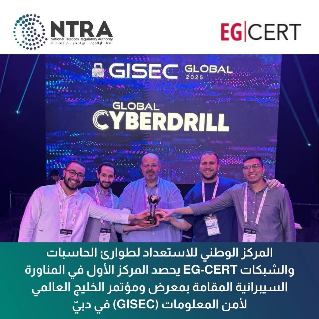 فازت مصر، ممثَلة في المركز الوطني للاستعداد لطوارئ الحاسبات والشبكات التابع للجهاز القومي لتنظيم الاتصالات، بالمركز الأول في المناورة السيبرانية العالمية التي نظمها قطاع تنمية الاتصالات بالاتحاد الدولي للاتصالات بالتعاون مع مجلس الأمن السيبراني في الإمارات خلال فعاليات معرض ومؤتمر الخليج العالمي لأمن المعلومات في دورته الرابعة عشرة التي انعقدت في الفترة من 6 إلى 8 مايو في دُبي.