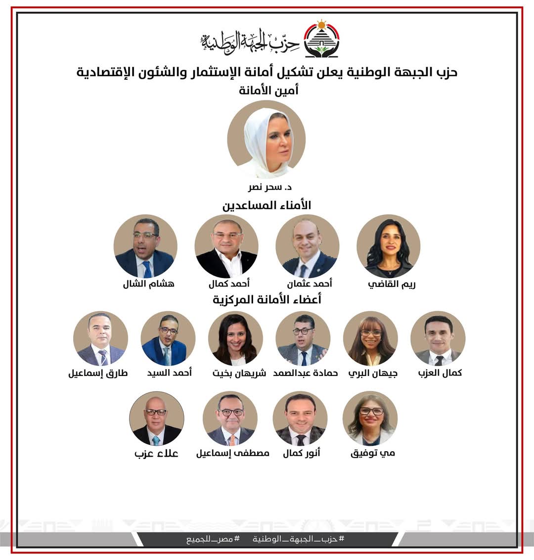 وتترأس الأمانة الدكتورة سحر نصر، وزيرة الاستثمار والتعاون الدولي السابقة، والتي تمتلك خبرة واسعة في المجالات الاقتصادية والتنموية على المستويين المحلي والدولي وضمت الأمانة نخبة من الكفاءات الاقتصادية المتنوعة، حيث تم تعيين كلا من