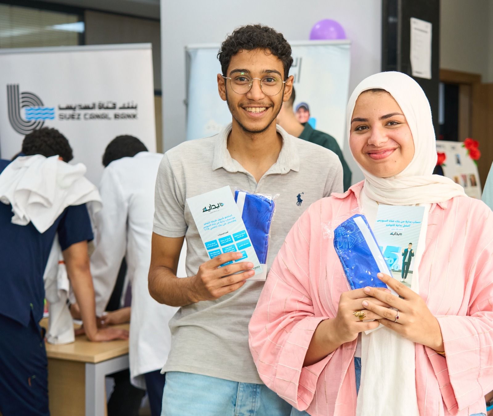 ولإضفاء طابع تفاعلي، قام البنك بتوزيع هدايا تذكارية على الطلاب المشاركين في الفعالية “حامل موبايل” وأيضًا “مقلمة” مصنوعين بيد الشباب في ورش مصرية، بهدف تعزيز الوعي بخدمات البنك وتشجيعهم على فتح حسابات بنكية.