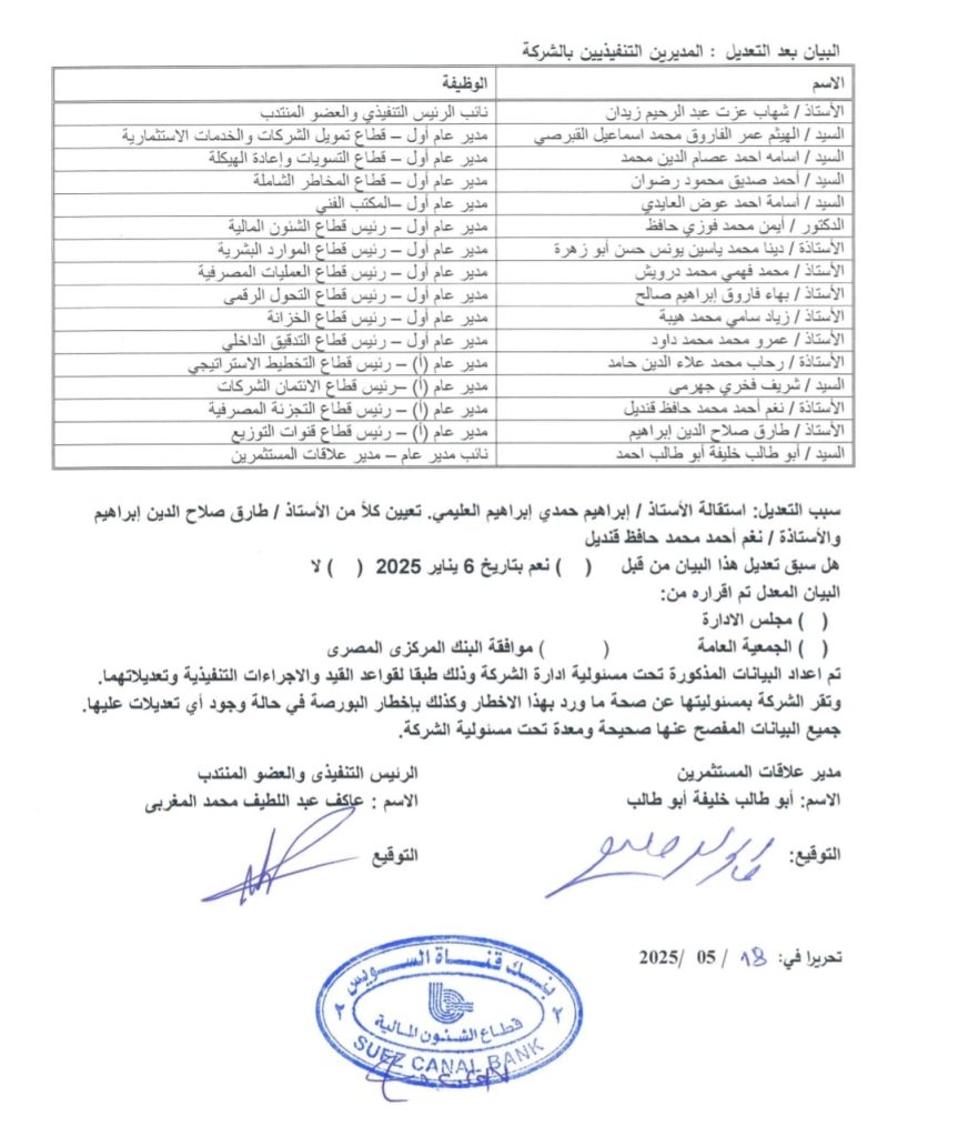 وأشار الإفصاح إلى أن هذه التغييرات الإدارية تأتي بالتزامن مع استقالة «إبراهيم العليمي»، مدير إدارة الفروع، من منصبه، بعد فترة من توليه مسؤولية تطوير شبكة الفروع على مستوى الجمهورية.