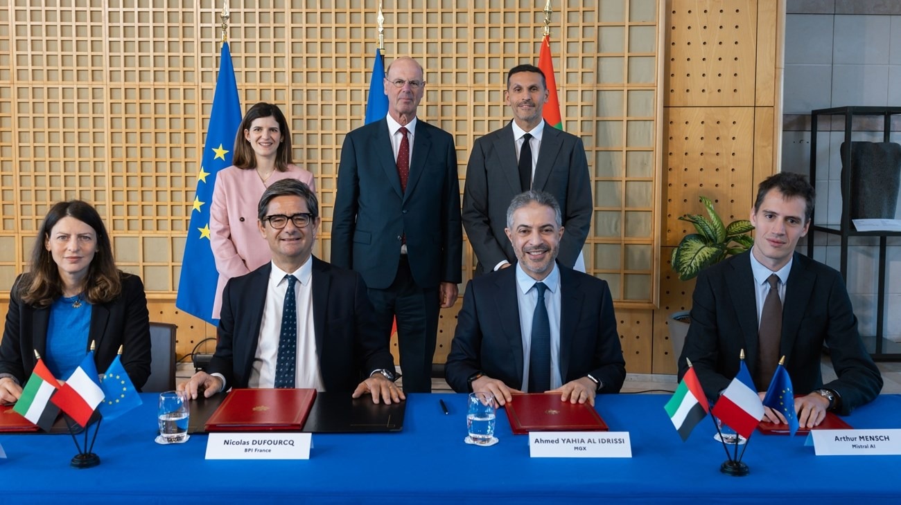 شهد توقيع اتفاق الشراكة إريك لومبارد، وزير الاقتصاد والمالية والسيادة الصناعية والرقمية الفرنسي، وخلدون المبارك، رئيس جهاز الشؤون التنفيذية وعضو مجلس الذكاء الاصطناعي والتكنولوجيا المتقدمة بدولة الإمارات.