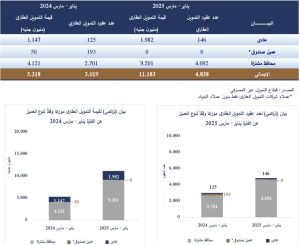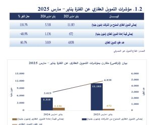 وأشار إلى أن إجمالي التمويل العقاري الممنوح من الشركات خلال مارس الماضي بلغ نحو 6.071 مليار جنيه مقابل 2.690 مليار جنيه خلال نفس الفترة من 2024، بمعدل نمو بلغ 125.7%، فيما تراجع إجمالي قيمة إعادة التمويل العقاري بنسبة 89.7%، ليسجل 98 مليون جنيه، مقابل 956 مليون جنيه ووصل عدد عقود التمويل العقاري إلى 1874 عقد مقابل 1042 عقد بزيادة بلغت 79.8%.