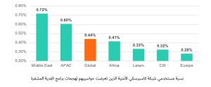 كما سجلت الأردن ومصر والإمارات العربية المتحدة والمملكة العربية السعودية أقل نسبة من المستخدمين المستهدفين بهجمات إلكترونية.