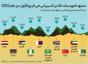 كما سجلت الأردن ومصر والإمارات العربية المتحدة والمملكة العربية السعودية أقل نسبة من المستخدمين المستهدفين بهجمات إلكترونية.