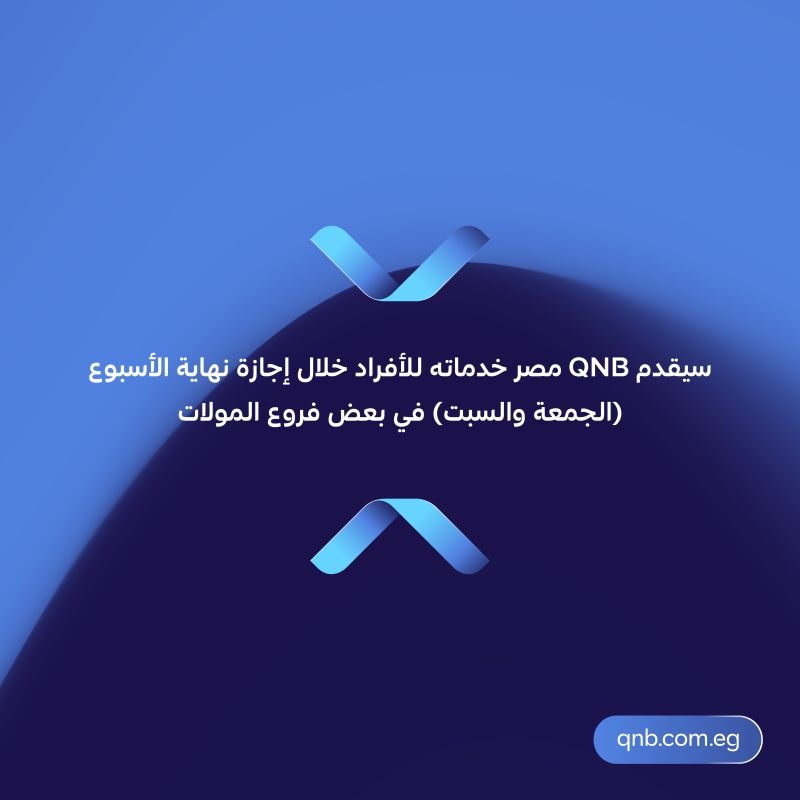 في خطوة تهدف إلى تعزيز تجربة العملاء وتسهيل حصولهم على الخدمات المصرفية، أعلن بنك «QNB -مصر» عن تقديم خدماته المصرفية للأفراد خلال عطلة نهاية الأسبوع “الجمعة والسبت” في مجموعة من فروعه المتواجدة داخل المراكز التجارية الكبرى في مصر.