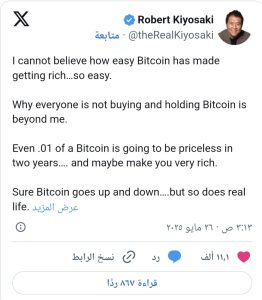 وقال كيوساكي في منشور على منصة “X”، “لا أصدق كم جعل بيتكوين من السهل أن تصبح غنيًا… الأمر سهل جدًا”. وأضاف: “لماذا لا يشتري الجميع بيتكوين ويحتفظون به؟ لا أفهم السبب” وفق قناة العربية Business.