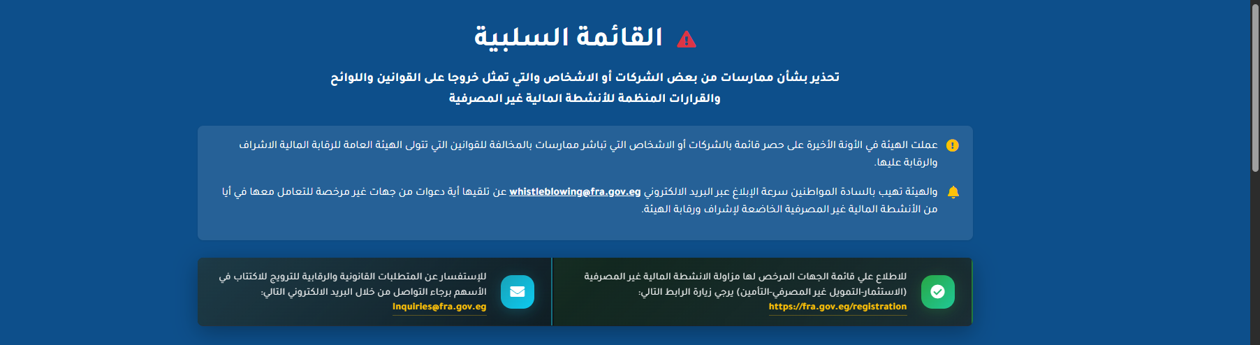 الرئيسية » هيئة الرقابة المالية المصرية تعلن القائمة السلبية للشركات بدون ترخيص: إحذروا هذه الشركات لا تتعاملوا معها