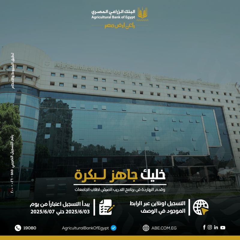 الصفحة الرئيسية بنوك رقمية«البنك الزراعي المصري» يفتح باب التقديم للتدريب الصيفي لطلاب الجامعات