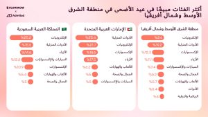 علاوة على ذلك، لعبت التجارة عبر الهواتف المحمولة دورًا رئيسيًا في تعزيز المبيعات خلال عيد الأضحى: شكلت الطلبات من الأجهزة المحمولة 47% من إجمالي الطلبات عبر الإنترنت في الإمارات، وأكثر من 50% في المملكة العربية السعودية. وعلى مستوى المنطقة بلغت نسبة المشتريات عبر الهواتف 41.5%، مقارنة بـ38% العام الماضي مما يعكس التحول الإقليمي نحو التسوق عبر الهاتف المحمول.
