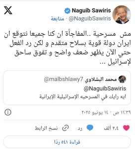 الصفحة الرئيسية أخبار«نجيب ساويرس» يعلق على قوة كل من إيران وإسرائيل في المواجهة بينهما