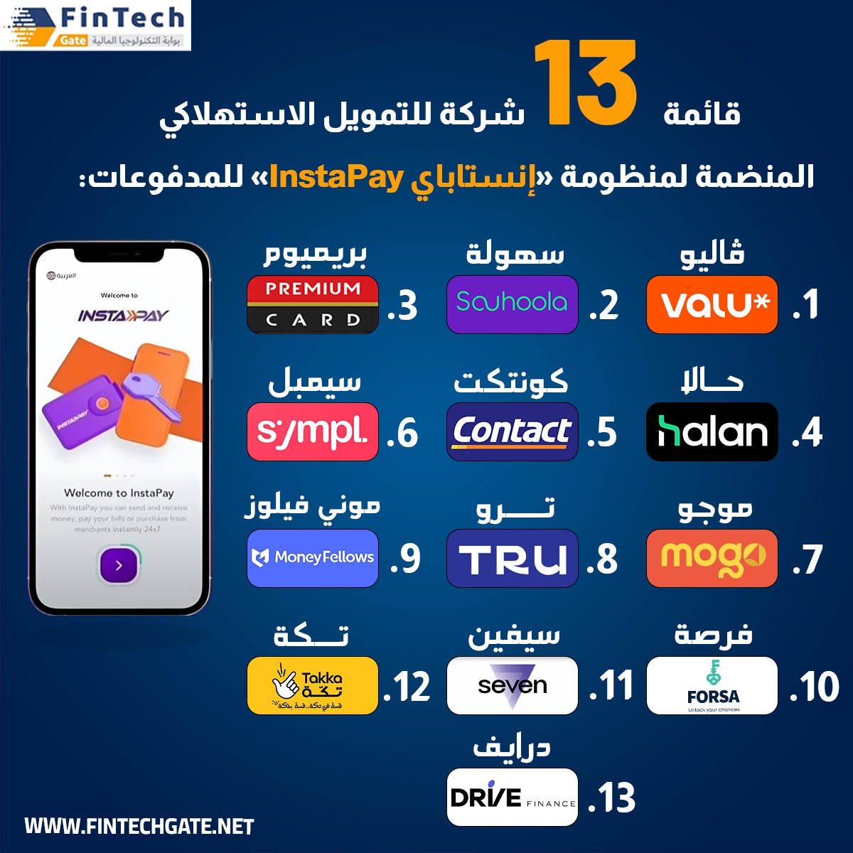 قائمة الشركات المدمجة ضمن منظومة «InstaPay» للتمويل: