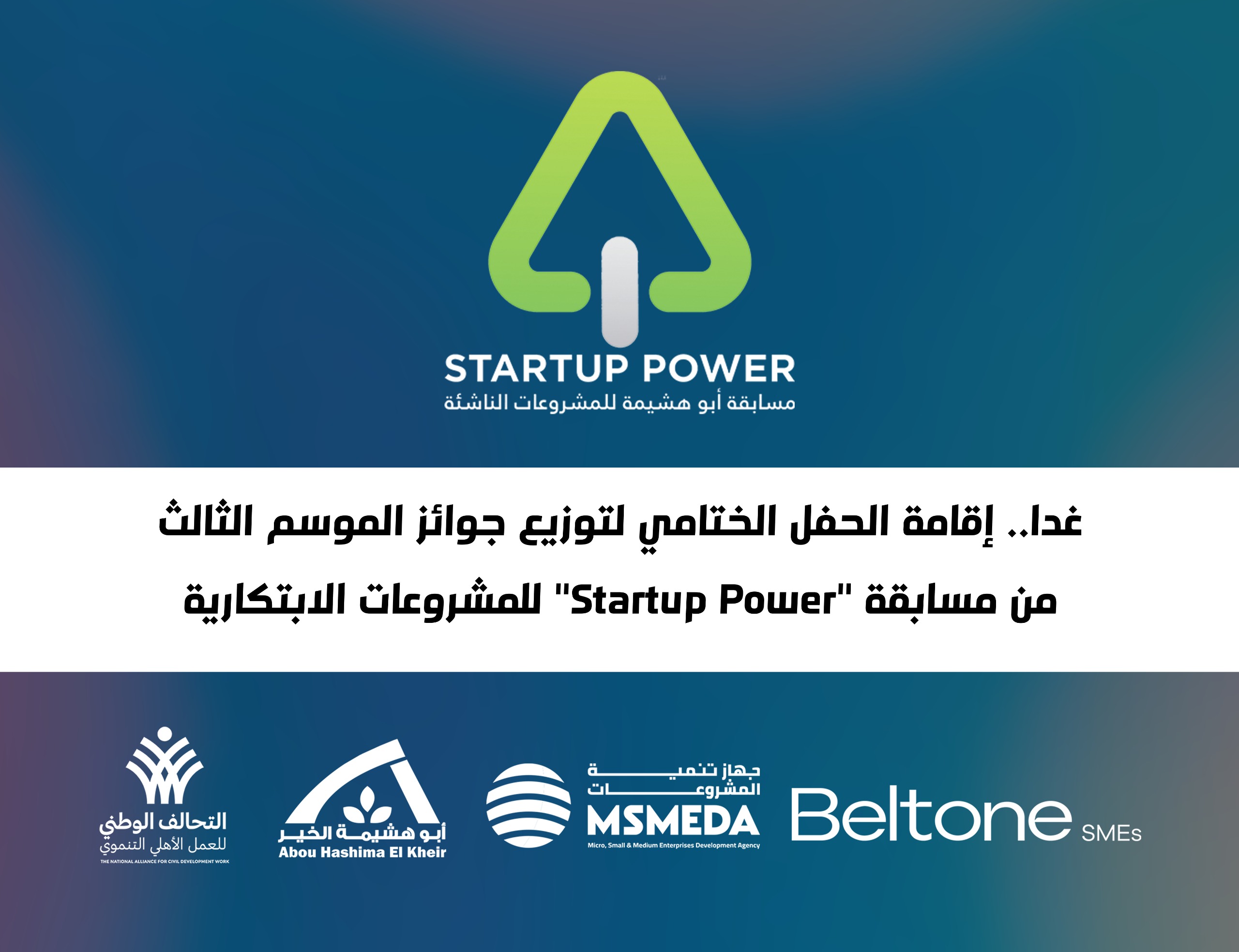 تختتم غدا الثلاثاء الموافق 24 يونيو مسابقة “Startup Power” لدعم المشروعات الناشئة في موسمها الثالث، بعد رحلة تنافسية امتدت لأشهر وجرت بين مئات من الشباب، بهدف تطوير أفكارهم الابتكارية والإبداعية وتحويلها إلى مشروعات حقيقية على أرض الواقع.