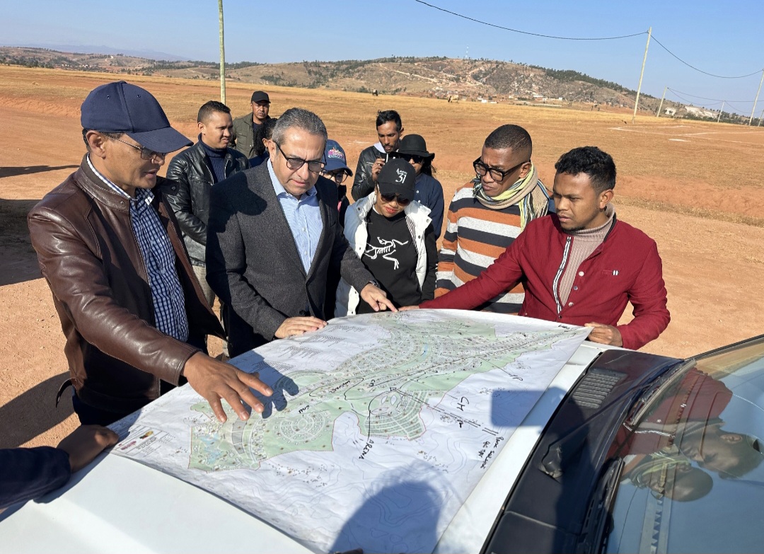 استهل “عباس” الزيارة بجولة ميدانية بموقع مشروع المدينة الجديدة “تانا-ماسواندرو”، والذي يُعد المشروع الأبرز في مجال التنمية الحضرية في مدغشقر، ويمتد على مساحة حوالي 2340 فدان ويبعد عن العاصمة قرابة 28 كم، حيث تم الاطلاع على مخططات المشروع وما تم تنفيذه حتى الان مع طلب المخططات والرسومات الخاصة بالمدينة للمراجعة والتدقيق.