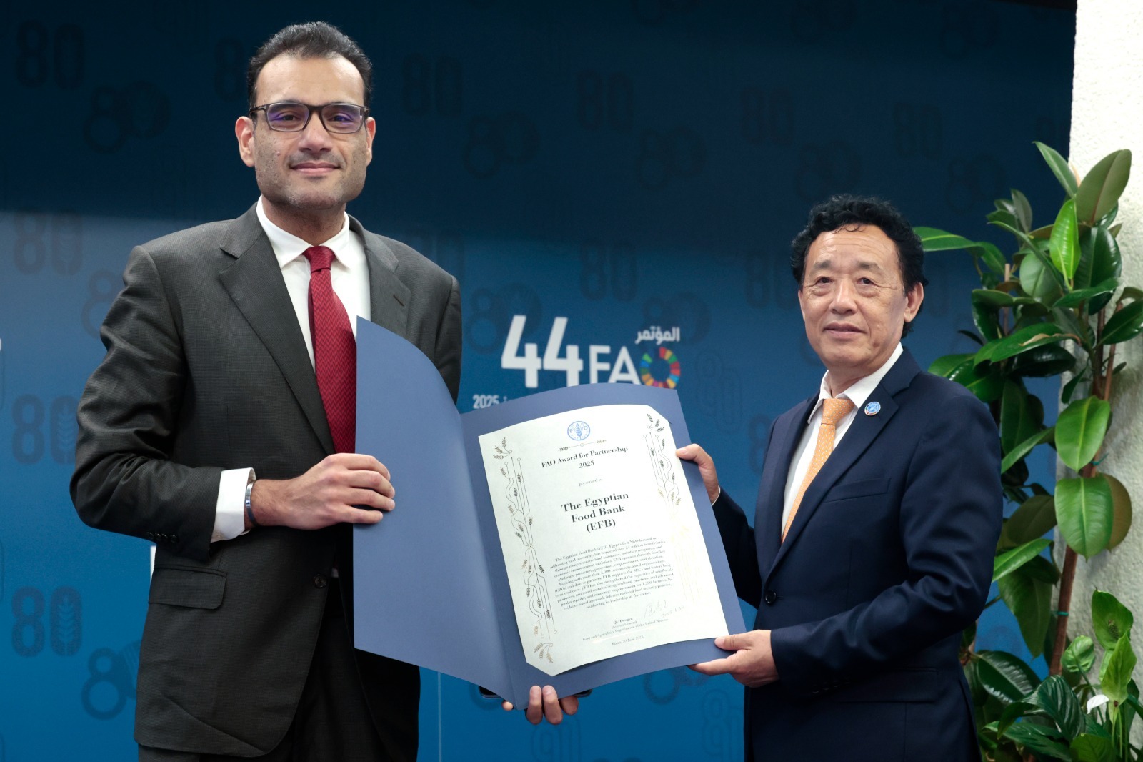 تسلّم بنك الطعام المصري – أول مؤسسة تنموية في المنطقة متخصصة في توفير غذاء صحي وآمن للمستحقين – جائزة منظمة الأغذية والزراعة التابعة للأمم المتحدة (الفاو)، بعد منافسة مع 69 منظمة من 37 دولة، خلال حفل رسمي أُقيم في العاصمة الإيطالية روما ضمن فعاليات مؤتمر الفاو المنعقد في الفترة من 28 يونيو إلى 4 يوليو 2025.