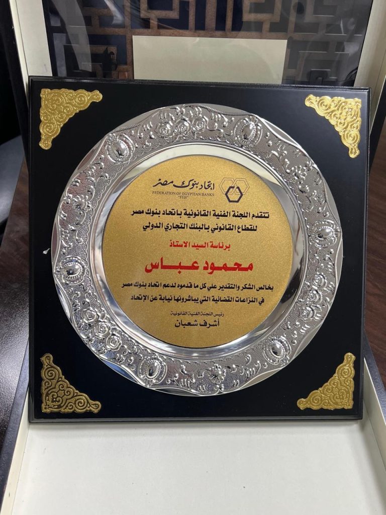 وقد جرى التكريم خلال اجتماع اللجنة الفنية القانونية لاتحاد بنوك مصر، بحضور الأستاذ/ محمد شعبان – وكيل محافظ البنك المركزي المصري، والأستاذ/ أشرف شعبان – المستشار القانوني للاتحاد، وعدد من كبار مسؤولي القطاعات القانونية بالبنوك.