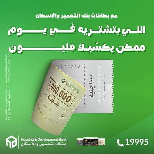 في خطوة جديدة لتعزيز تجربة العملاء وتحفيز استخدام وسائل الدفع الإلكتروني، أعلن بنك التعمير والإسكان عن إطلاق حملة ترويجية حصرية لحاملي بطاقاته الائتمانية وبطاقات الخصم المباشر، تحت شعار “اللي بتشتريه في يوم ممكن يكسِّبك مليون جنيه”، وذلك خلال الفترة من 1 يوليو وحتى 31 أغسطس 2025.