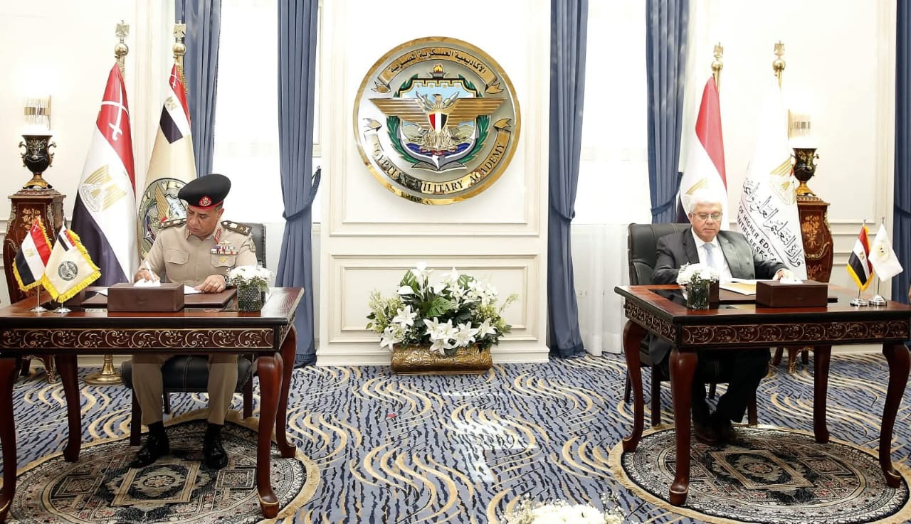 وقع الفريق / أشرف سالم زاهر مدير الأكاديمية العسكرية المصرية بروتوكول تعاون مع الدكتور / محمد أيمن عاشور وزير التعليم العالى والبحث العلمى للمساهمة فى رعاية المبتكرين والنوابغ من الطلاب.