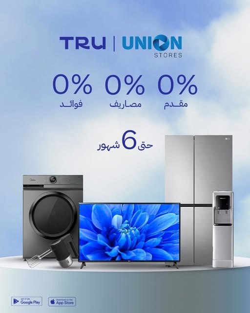 أعلن تطبيق «Tru» للتمويل الاستهلاكي عن إطلاق عرض حصري جديد يتيح للعملاء تقسيط جميع الأجهزة المنزلية من سلسلة معارض «Union Stores» دون دفع مقدم أو مصاريف شراء أو فوائد لمدة تصل إلى 6 شهور.