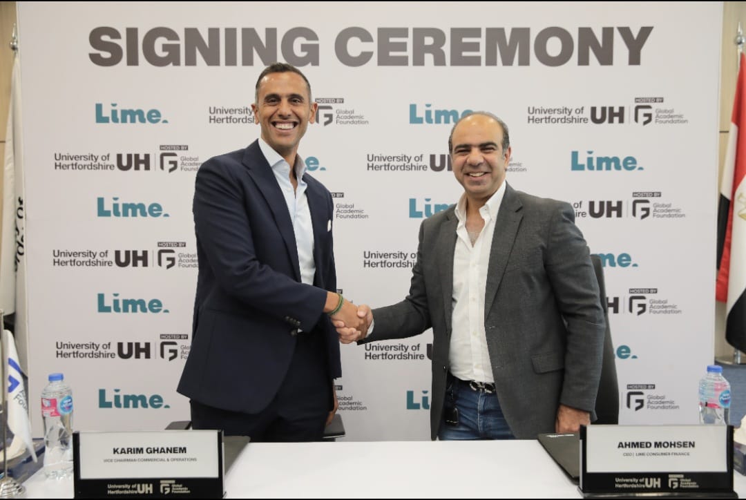 Lime Consumer Finance, the largest platform for education financing in Egypt, has joined forces with the University of Hertfordshire (UH-GAF) by signing a memorandum of understanding (MoU) to provide students and their families with flexible tuition payment solutions.