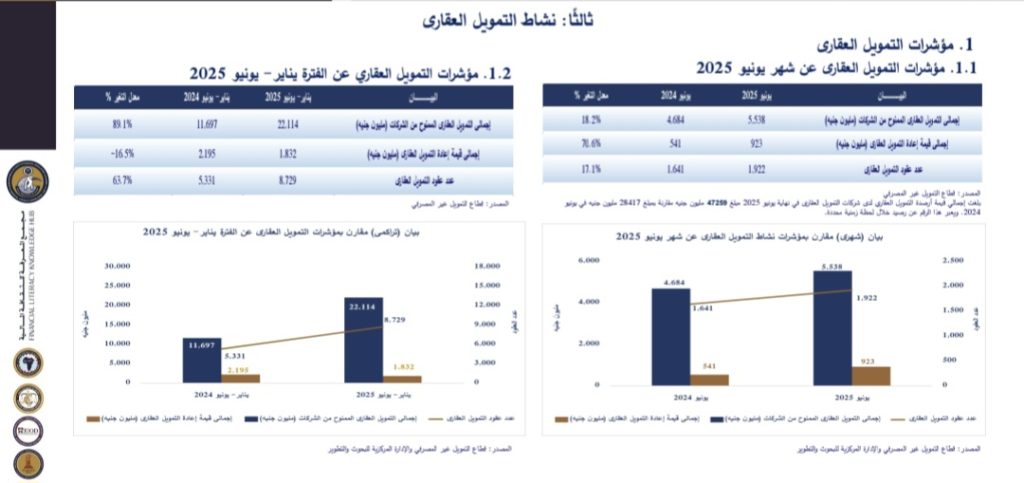 أعلنت الهيئة العامة للرقابة المالية أن إجمالي التمويل العقاري الممنوح من الشركات خلال الفترة (يناير-يونيو) من 2025 بلغ نحو 22.11 مليار جنيه مقابل 11.697 مليار جنيه خلال نفس الفترة من 2024، بمعدل نمو بلغ 89.1%.