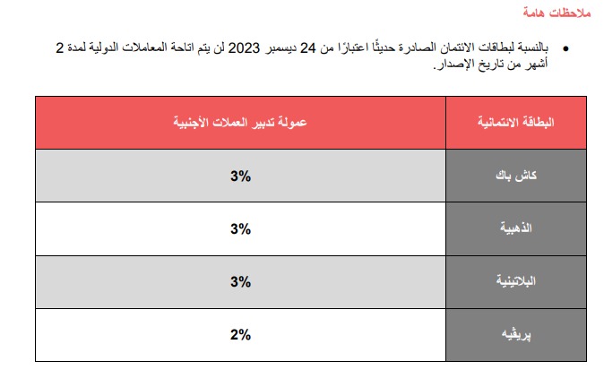 أعلن «التجاري وفا بنك مصر» عن رفع الحد الأقصى للاستخدام الدولي لبطاقات الائتمان حتى 500 ألف جنيه، مع خفض عمولة التدبير إلى 3%، وإلى 2% لعملاء «Banque Privée».