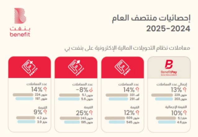 «بنفت» البحرينية للتكنولوجيا المالية تسجل 243 مليون معاملة بقيمة 48.23 مليار دولار بالنصف الأول 2025